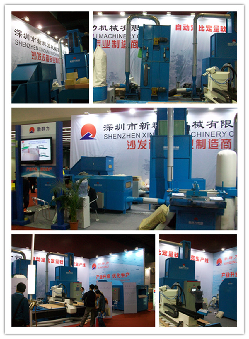 中國廣州國際機械、家具配料展覽會在廣州市琶洲會展中心盛大開幕。展會中,國內外機械行業的龍頭企業和長三角、珠三角、港臺以及國外的機械行業匯聚一堂。深圳市新群力機械有限公司,作為一家多年來致力于沙發機械生產自動一體化,在沙發機械制造行業的龍頭老大。 在展會中,我司展出了最新推出的裁板機、全自動大批量枕頭(抱枕)生產線、重新改良的ESF001D坐墊填充機以及ESF007-3帶有三把刀的海綿切粒機。吸引了來至國內外眾多客戶前來參觀。