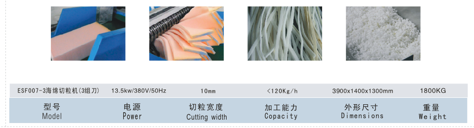 適用于將海綿、裥綿(帶布的海綿)、噴膠綿等切成比較規則的顆粒形狀。(長短3-30mm可調)